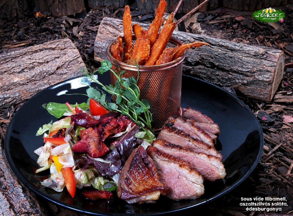 Sous vide goose breast, cranberry salad, sweet potato