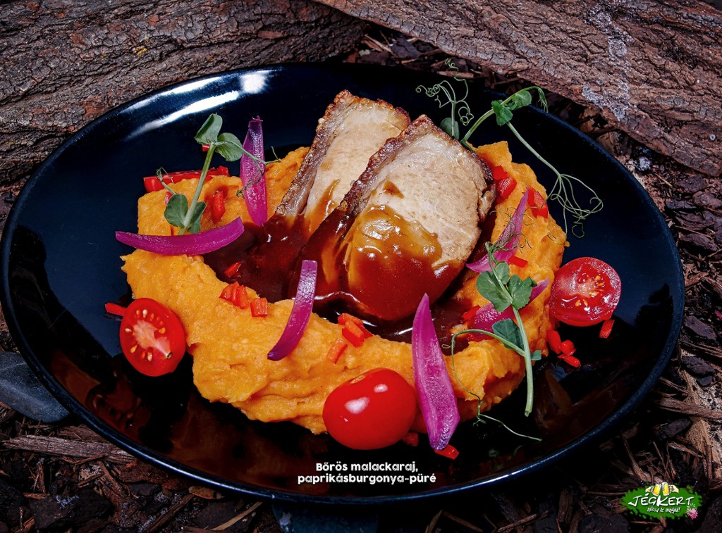Pork loin with skin, pepper potato puree