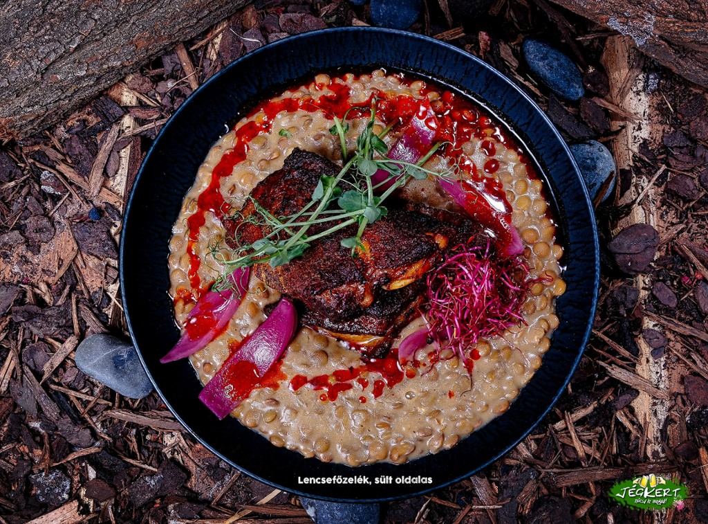Roasted sides, lentil stew