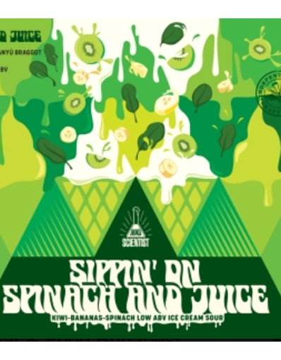Ice Cream Smoothie Sour with Kiwi-Bananas-Spinach. Zöld, nyilván a kedvenc ízed az egészségtudtatosság jegyében! Frissesség, könnyedség, selymesség. Az első kortyban a kiwi élénk savanykássága köszön vissza, amit a banán bársonyos édessége egészít ki, végül a spenót ad lágy és természetes keretet az ízeknek. Ez nem csak egy ital, inkább desszert álruhában – vagy egy smoothie, ami bulizni jött laza 2,5%-kal.