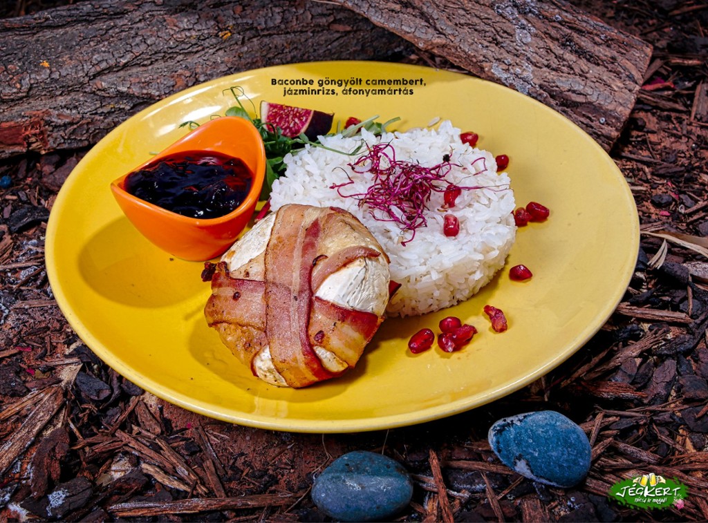 Csirkemell serranóval, camembert-rel sütve, mangós saláta, rösztiburgonya