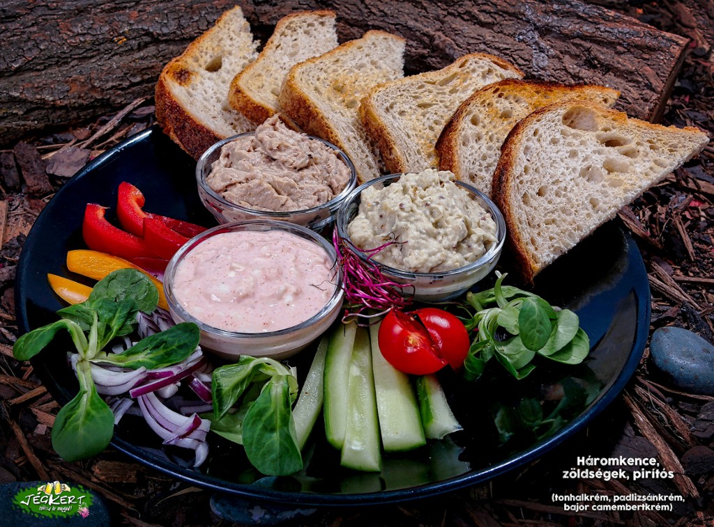 Padlizsánkrém, bajor camembert-krém, majonézes tonhalkrém