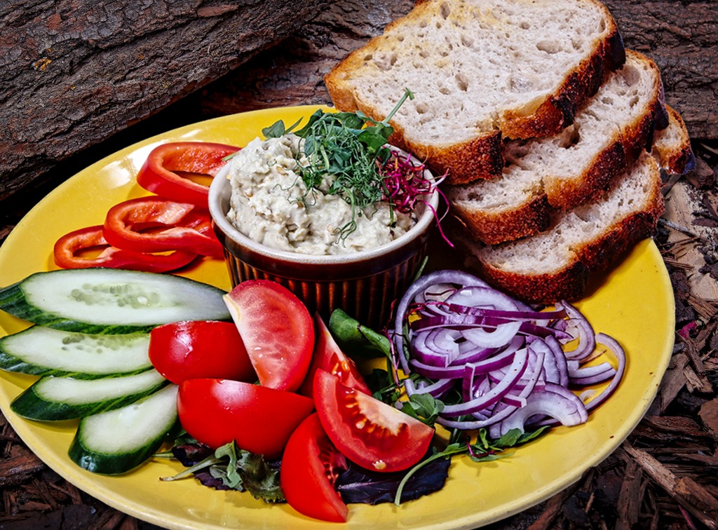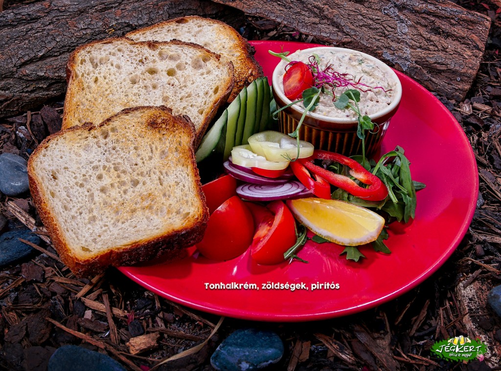 Majonézes tonhalkrém, friss zöldségek, pirítós